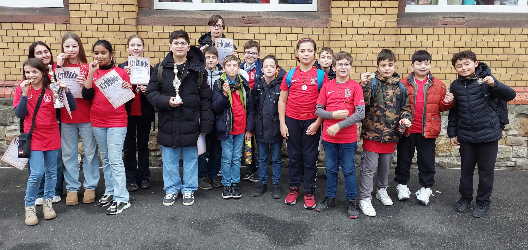 Insgesamt waren 18 Schülerinnen und Schüler mit ihren vier Betreuern Herr und Frau Frömbgen, Herr Thönnessen und Frau Hattemer nach Mainz Bretzenheim gereist. Zusätzlich zu den zwei Jungen-Mannschaften in der WK IV (bis Jahrgang 2012) waren dies ein Mädchen-Team (WK M) und zwei Einzelspieler.