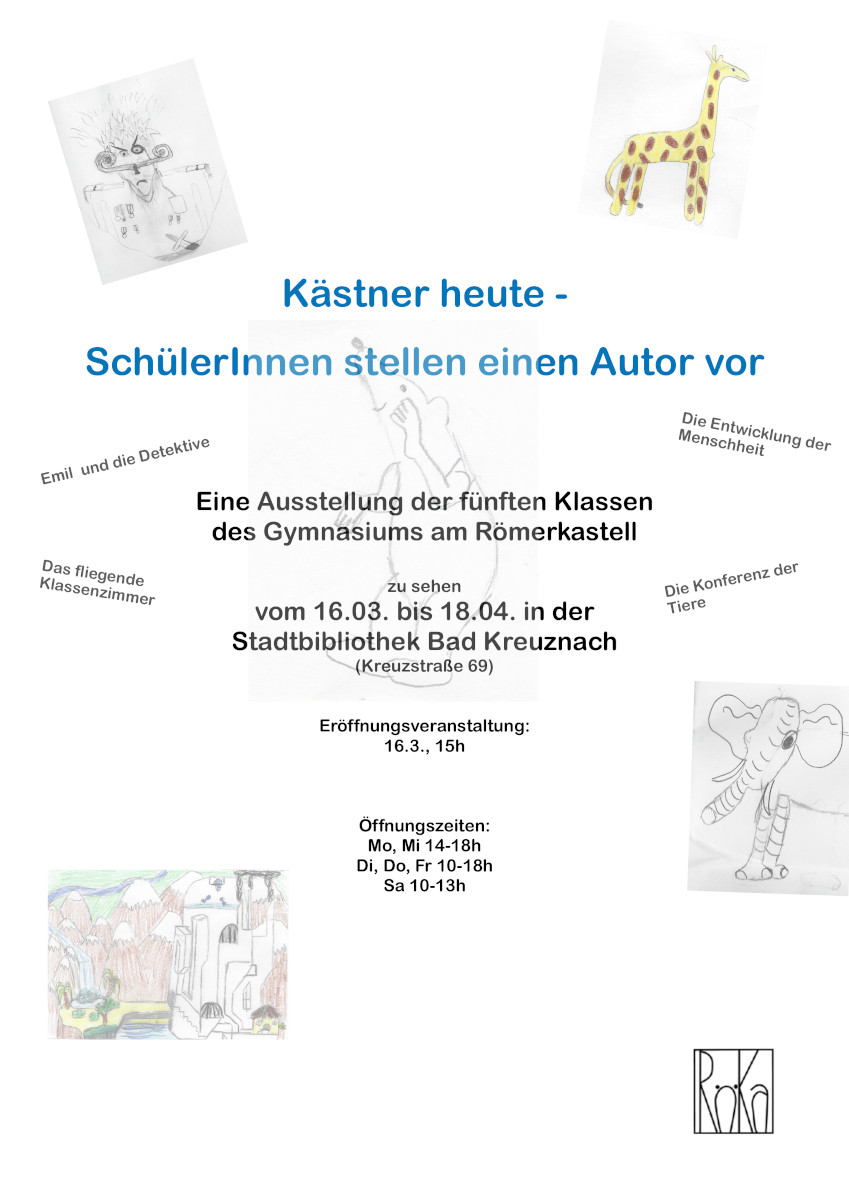 Also planten unsere kreativen und fleißigen Fünftklässler eine vielfältige und fantasievolle Plakatausstellung, in der einige bekannte Werke des Autors auf ganz unterschiedliche, oft auch kritische Weise für die heutige Zeit erschlossen werden sollten. Doch dann kam den engagierten Ausstellungsmachern in der letzten Vorbereitungswochen leider das Corona-Virus in die Quere, sodass sie ihr großes Vorhaben nicht beenden konnten. Von den ursprünglich vier geplanten Themenblöcken liegen daher jetzt nur zwei vor: eine Fotostory zu „Emil und die Detektive“ (5c) und Um- bzw. Fortschreibungen der „Konferenz der Tiere“ (5a). Auch der geplante Ausstellungsort, nämlich die Bad Kreuznacher Stadtbibliothek, wurde während der Pandemie geschlossen. Wie schade um all die Arbeit! Zum Glück gibt es jedoch die Möglichkeit, das Fertige hier als virtuelle Version zu präsentieren, damit die entstandenen Werke doch noch ihr Publikum erreichen.