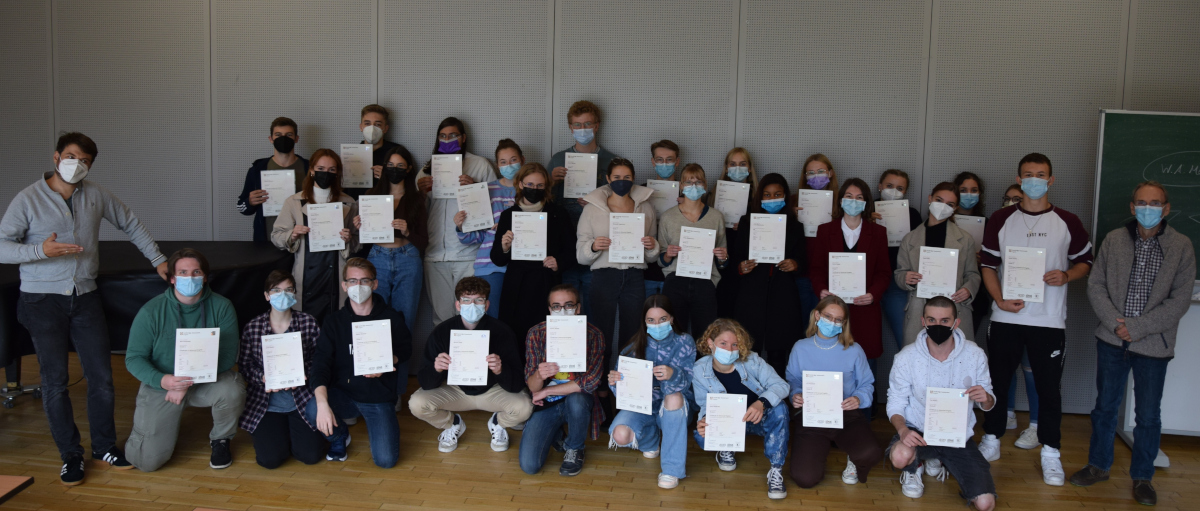 Folgenden SchülerInnen durfte dieses Jahr zum bestandenen Zertifikat gratuliert werden: Axinia Buttkow, Arianna Castillo, Tamina Code, Enya Deyhle, Lea Ferrier, Noah Fuchs, Severin Geib, Rosalie Groß, Maximilian Grosse, Elisabeth Hegemann, Sina Heidecker, Xenia Hoppe, Lilly Hüttemann, Paula Kadel, Tim Kalina, Jana Kloster, Lea Kriewald, Kelvin Küster, Liria Mahalacane, Aaron Melaas, Jerome Münch, Stefan Olivanov, Rebecca Picher, Tizian Roth, Jonathan Schmid, Ben Schückler, Nicole Siebert, Joleen Simmich, Chiara Sturm, Patrick Völchert, Lisa Wagner, Fenja Westermann, Sarah Wirtz.