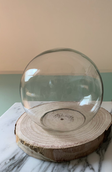 Die Glaskugel stellt die Erde da. Gott ist überall auf der Erde und er ist unsichtbar und füllt somit die Glaskugel/ die Erde. Gott hat die Erde geschaffen unter Aufwand seiner Zeit, deshalb steckt in der Erde ein Teil Gottes. Nicht nur Gottes Zeit, sondern auch Gottes Bewertung des Geschaffenen: „…und Gott sah, dass es gut war.“ (1. Mose 1.10). Auch ist eine Parallele zur Sintflut mit Noah mög-lich. Die aufgeschnittene Glaskugel ähnelt einer Schüssel und lässt sich somit mit Wasser füllen.