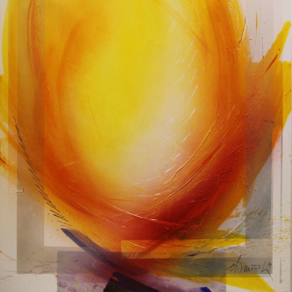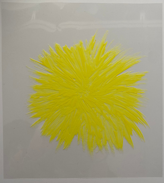 Zu sehen sind viele einzelne Pinselstriche aus strahlend gelber Acrylfarbe. Zusammen bilden sie einen großen farbigen Fleck. Dies ist auf einer transparenten Folie abgebildet. Damit soll erzielt werden, dass man bei verschiedenen Perspektiven und Lichteinfällen auf das Werk auch verschiedene Farbnuancen wahrnimmt, sowie, dass die einzelnen Pinselstriche unterschiedlich stark zu sehen sind.