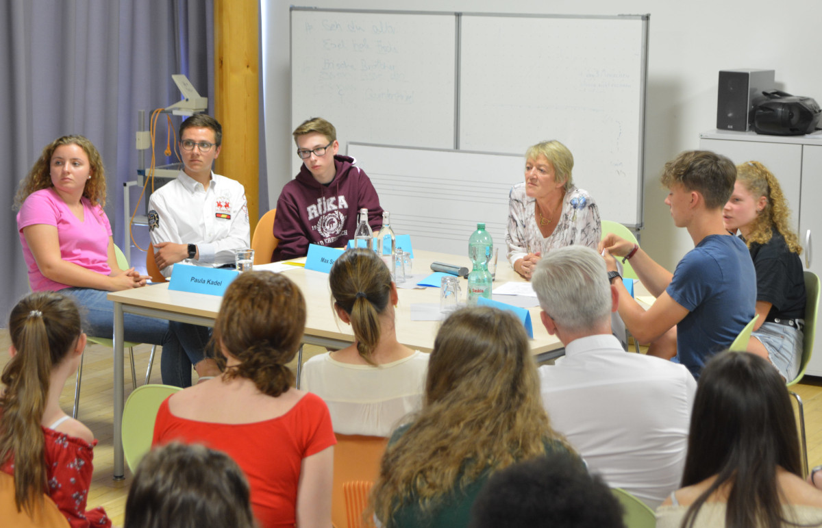 „So, jetzt habt ihr mich lange genug gegrillt“, meinte Birgit Collin-Lange lächelnd, nachdem sie sich anderthalb Stunden in großer Hitze mit den Fragen der Jugendlichen aus der 10.Klasse des Gymnasiums am Römerkastell auseinandergesetzt hatte.