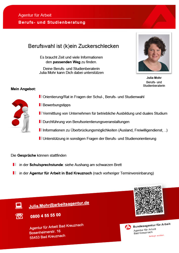 - Infos rund um die Berufs-/Studienwelt und -wahl,