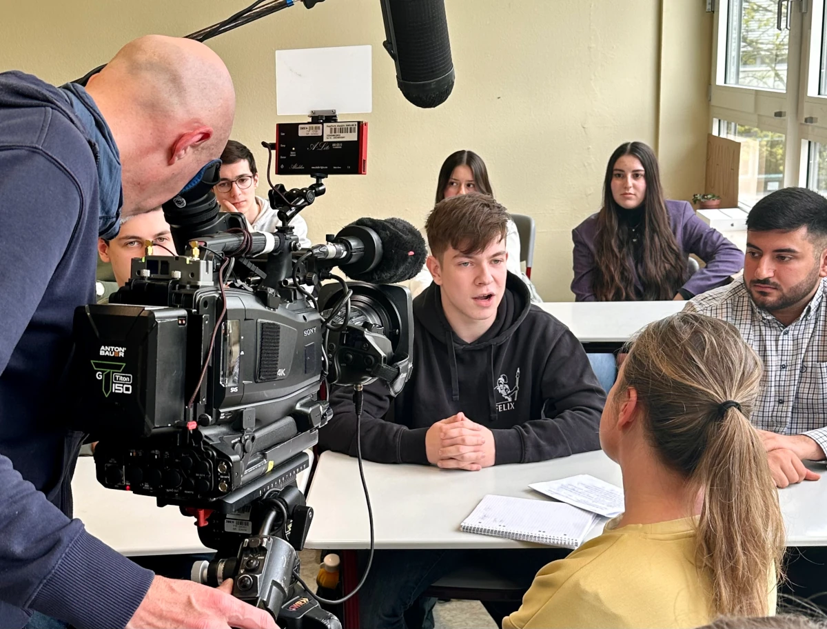 In dieser Woche gab es Besuch von der Bundeswehr. Die Jugendoffizierin Lara Weyland besuchte den 12er Sozialkunde-LK von Herrn Franke und diskutierte mit den Schülerinnen und Schülern über den Ukraine-Konflikt und die damit verbundene Zeitenwende. Da solche Besuche umstritten sind, gab es anschließend Presseberichte in SWR aktuell, dem Mittagsmagazin sowie am Abend in den Tagesthemen, hier zum Nachschauen: