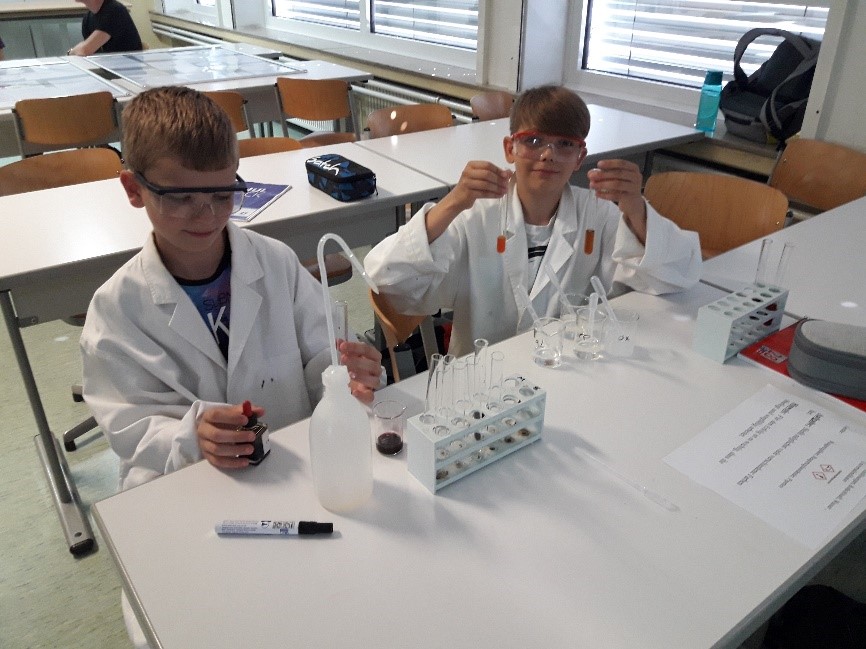 Schüler untersuchen während der Projekttage die Wirkungsweise von Zaubermalern:
