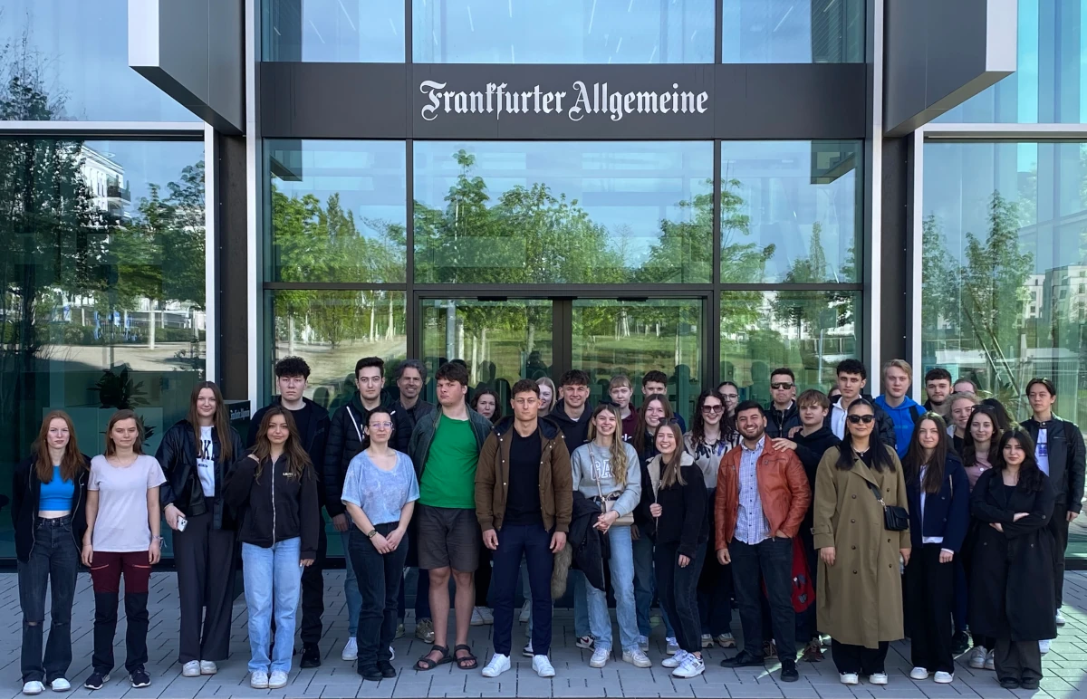 Trotz oder gerade wegen des rasanten Medienwandels ist das Interesse, Einblick in die Arbeit großer, etablierter Zeitungsverlage zu gewinnen, enorm. Nur selten erhalten Schülerinnen und Schüler aber einen so individuellen Zugang zur Redaktion einer überregionalen Zeitung, wie ihn unsere Deutsch-Leistungskurse der MSS11 und 12 am 11.04.2024 erleben duften.