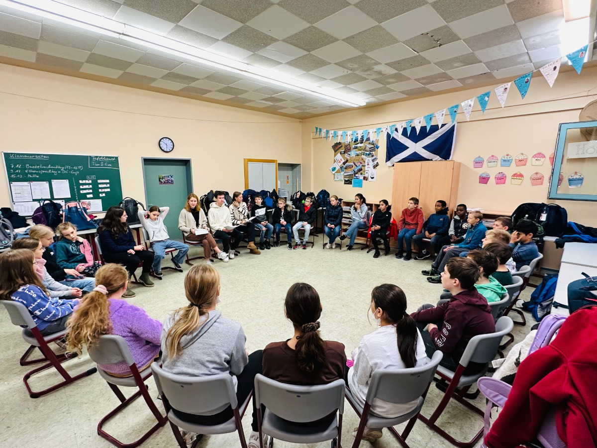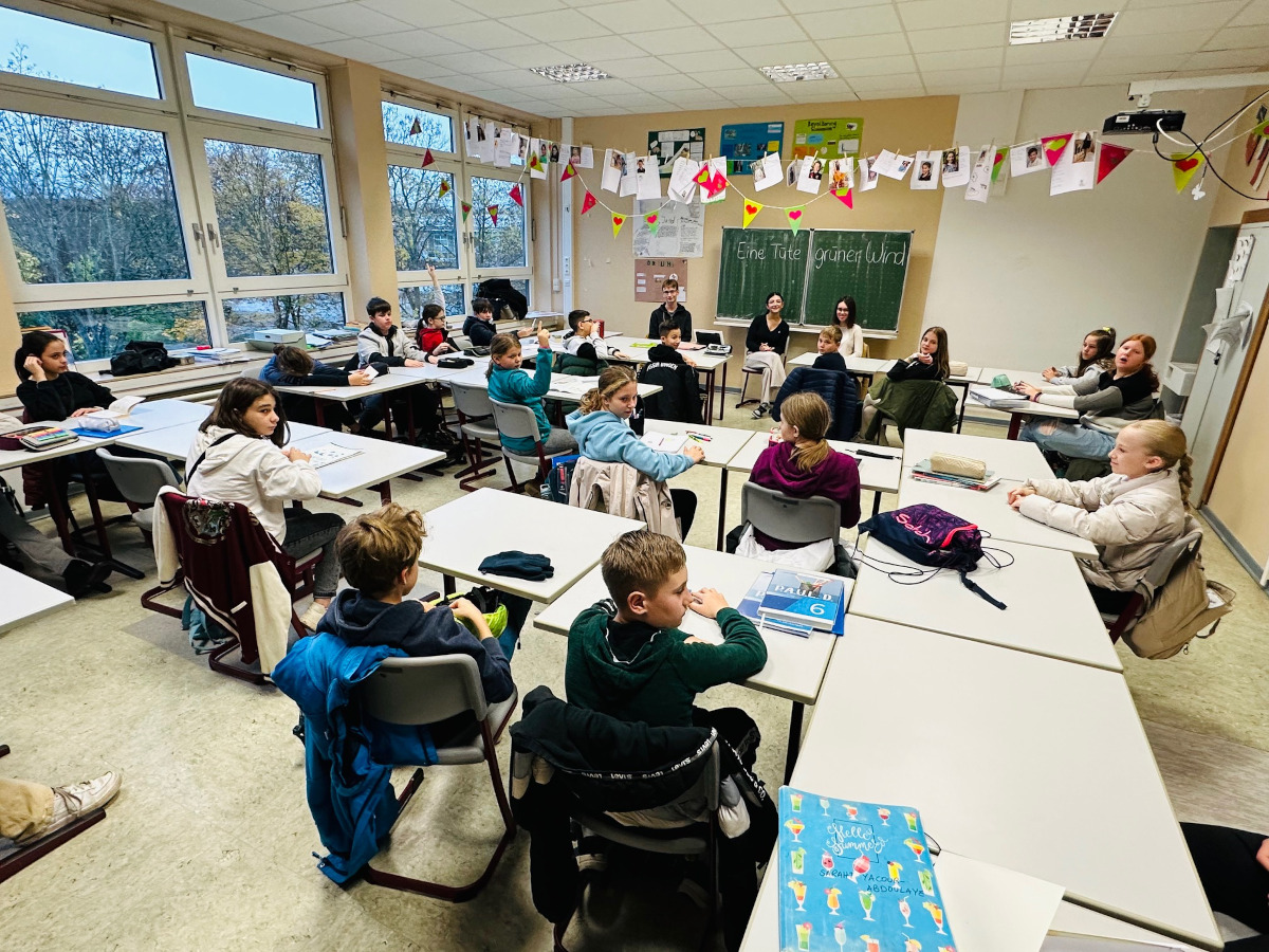 Schülerinnen und Schüler des Leistungskurses Deutsch (MSS 12) von Herrn Franke haben zum bundesweiten Vorlesetag zwei fünften und einer sechsten Klasse aus dem Buch „Eine Tüte grüner Wind“ von Gesine Schulz vorgelesen. Bereits seit 2004 ist der Vorlesetag Deutschlands größtes Vorlesefest und begeistert auf gemeinsame Initiative von Die Zeit, Stiftung Lesen und Deutsche Bahn Stiftung als öffentliches Zeichen alljährlich am dritten Freitag im November Kinder und Erwachsene für die Bedeutung des Vorlesens.