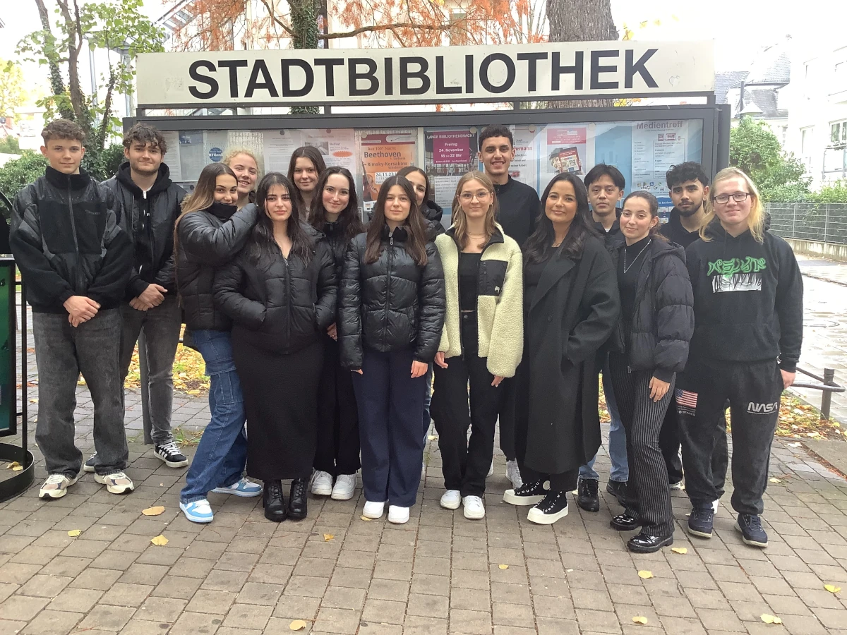 Am 6.11.2023 besuchten die Mitglieder des Leistungskurses Deutsch der MSS11 die Stadtbibliothek. Sie informierten sich über die Gestaltung und Arbeitsweise der Institution sowie mögliche Berufe in diesem Bereich. Aber mit der Leiterin der Jugendabteilung, Frau Kerstin Viehl, diskutierten sie auch Grundsätzliches, nämlich die Frage nach der Bibliothek der Zukunft. Wird es in dieser überhaupt noch Bücher geben? Wird sie zu einem bloßen Begegnungsraum? Die Kursmitglieder jedenfalls waren sich schließlich einig: Ohne Bücher würde der Bibliothek etwas ganz Entscheidendes fehlen - zum Versinken in Traumwelten, als Ruhepol im Alltag und bei der Suche nach gesicherten Informationen.