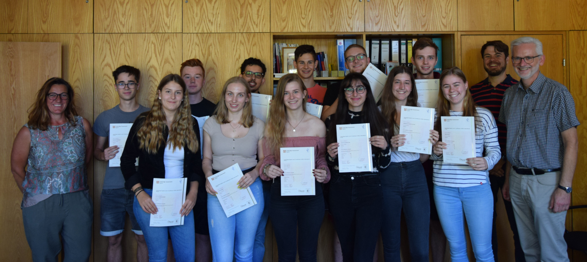 Mit der Unterstützung von Martina Baumgart, Anne Klausing und Matthias Magin haben alle Schüler mindestens das Sprachniveau B2 erreicht. „Acht der Teilnehmer haben sogar C1 erreicht, was dem Niveau eines Muttersprachlers sehr nahe kommt“, weiß Matthias Magin zu berichten. Ein hohes Sprachniveau bei den modernen Sprachen ist am Gymnasium Römerkastell kein Zufall, da das Schulprofil mit dem bilingualen Zweig den Fokus bereits ab der Orientierungsstufe auf Fremdsprachen richtet.
