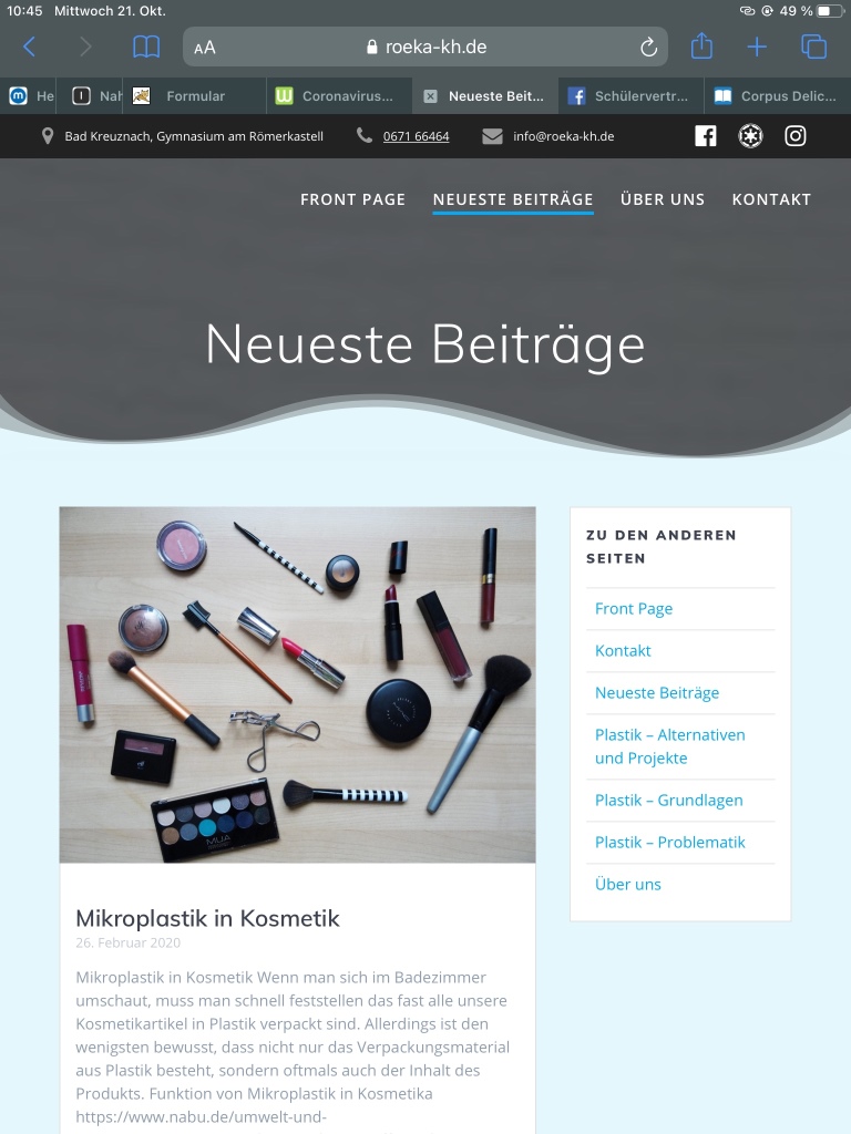 Von wegen, Digitalisierung sei für Roekaschüler ein Fremdwort. Schon vor der Corona-Krise nutzen die 18 Schülerinnen und Schüler des Erdkunde Leistungskurses der MSS 13 die Zeit zwischen den schriftlichen Abiturarbeiten und dem mündlichen Abitur um an einem Wettbewerb, den das Ministerium für Umwelt ausgelobt hatte, teilzunehmen. So wurde mit Hilfe der Fachlehrerin Angela Ecarius und dem Informatiklehrer Thorsten Wagner ein Blog erstellt, der die Problematik der Plastikvermüllung aufgreift.