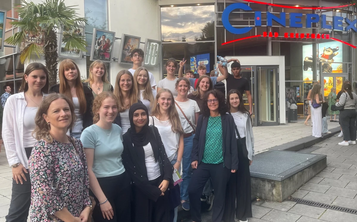 Am 27. August 2025 hatten OberstufenschülerInnen der Fächer Französisch und Geschichte die besondere Gelegenheit, im Cineplex Bad Kreuznach an einer exklusiven Premiere des ZDF-Fernsehfilms „An einem Tag im September“ teilzunehmen. Begleitet wurden sie von ihren Lehrerinnen Frau Huck, Frau Drath und Frau Klausing-Erdemir. Die Veranstaltung, zu der die Konrad-Adenauer-Stiftung eingeladen hatte, stand unter der Schirmherrschaft der Präsidentin des Deutschen Bundestags, Julia Klöckner. Im Anschluss an die Vorführung fand ein Filmgespräch mit ihr und anderen Mitwirkenden statt, das den jungen ZuschauerInnen auch Raum für Fragen bot.