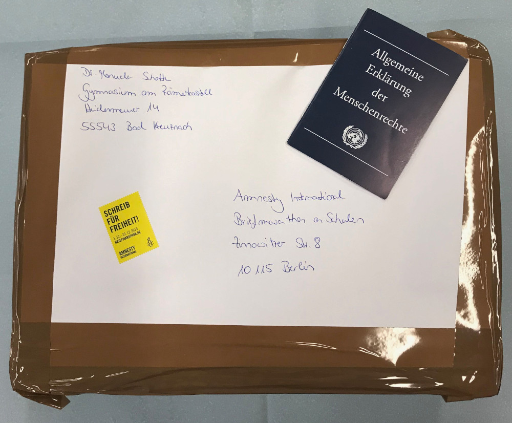 Am 20.12.2019 um 11h, dem offiziellen Ende des diesjährigen Briefmarathons von Amnesty International am Röka, hatten die Mitglieder unserer Schulgemeinde exakt 900 Briefe unterschrieben. Das heißt, wir duften ein 5,3kg schweres Paket auf den Weg schicken.