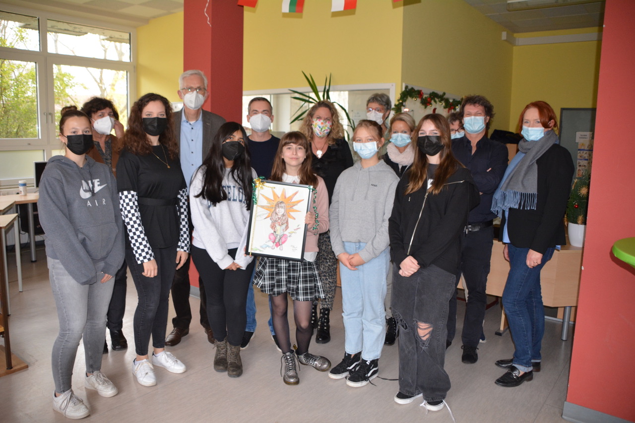 Dieser Sieg musste selbstverständlich auch im schulischen Rahmen gefeiert werden und dazu wurde bewusst Freitag, der 19.11.2021 ausgewählt – der bundesweite Vorlesetag. Nachdem in der 4. Stunde rund 20 Kolleginnen und Kollegen an einem spontan organisierten „Lehrerleseflashmob“ ihre Klassen überrascht hatten, wurde es ab 12 Uhr in der Schülerbibliothek richtig feierlich.