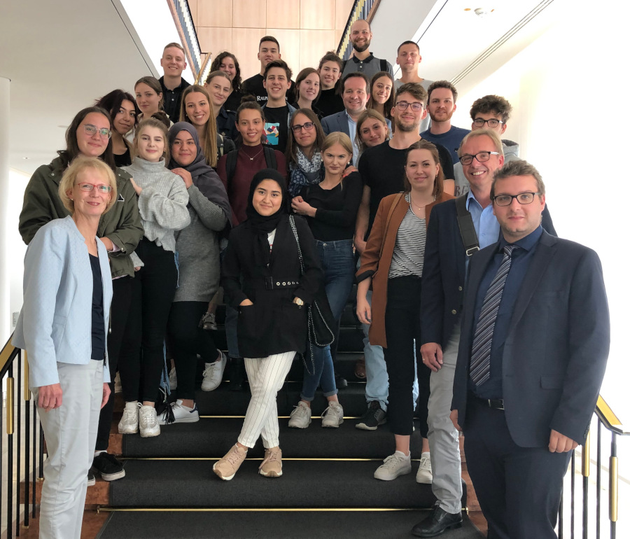 Die Gymnasiasten waren bestens auf den Besuch vorbereitet. So hatten sie sich im Vorfeld im Unterricht mit den Aufgaben und Funktionen der Staatskanzlei vertraut gemacht und Fragen zu verschiedenen Bereichen entwickelt.