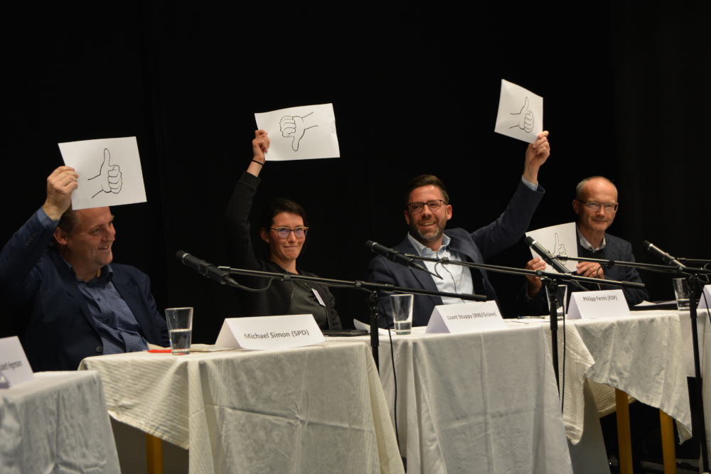 In der folgenden Schnellfragerunde mussten sich die Politiker rasch für Pro oder Kontra bei den Themen Klima, Legalisierung von Cannabis, Gendern und zahlreichen anderen Bereichen entscheiden.