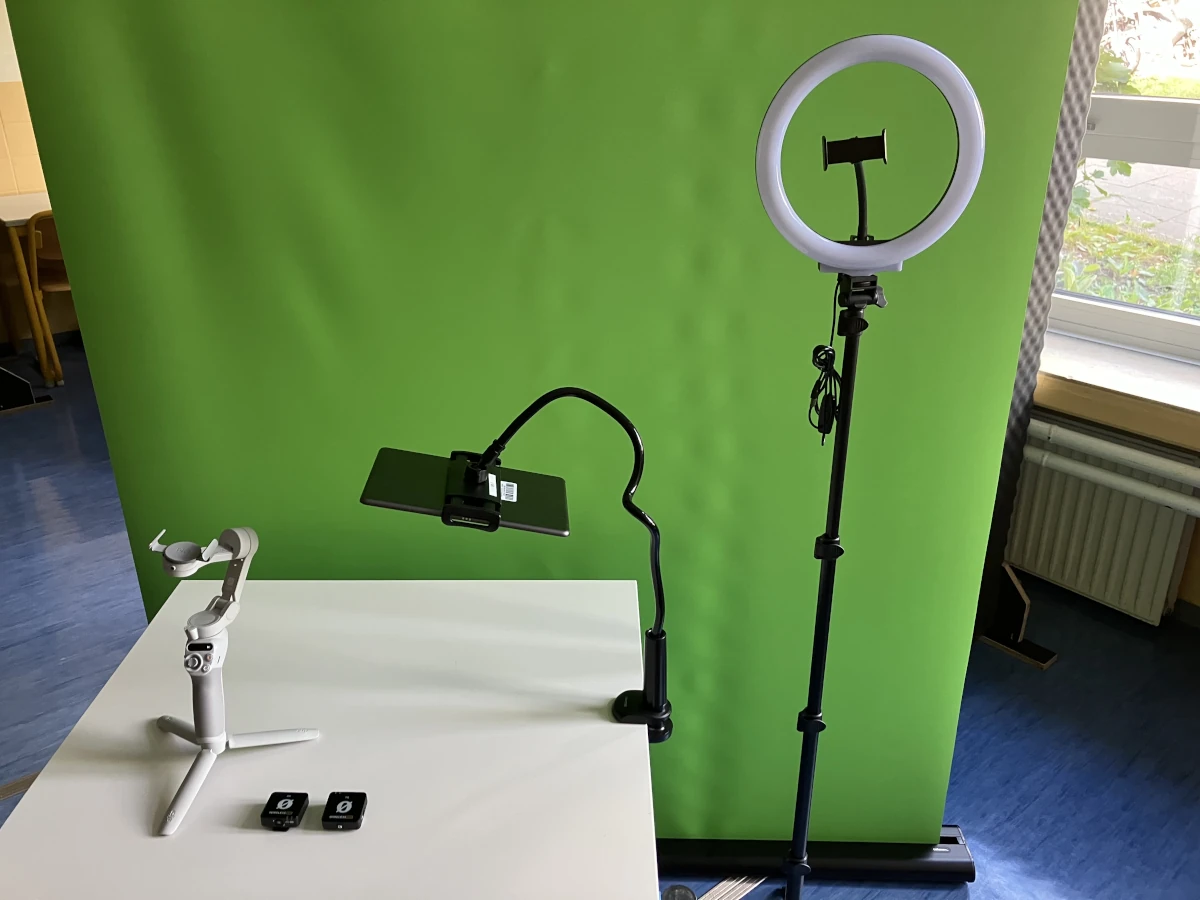 Er erlaubt es uns, Schülerprojekte, wie es sie auch jetzt schon häufig gibt, z.B. in Form von Podcasts oder Videos, die im Unterricht produziert werden, noch leichter umzusetzen, da die Technik und die benötigten Materialien in einem Raum immer verfügbar sind und nicht zu jeder Stunde neu mitgebracht und aufgebaut werden müssen.