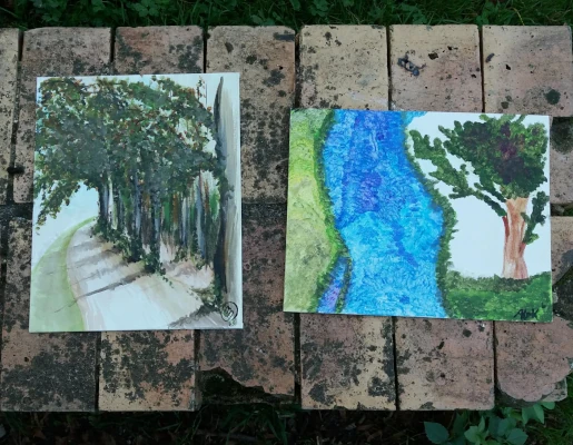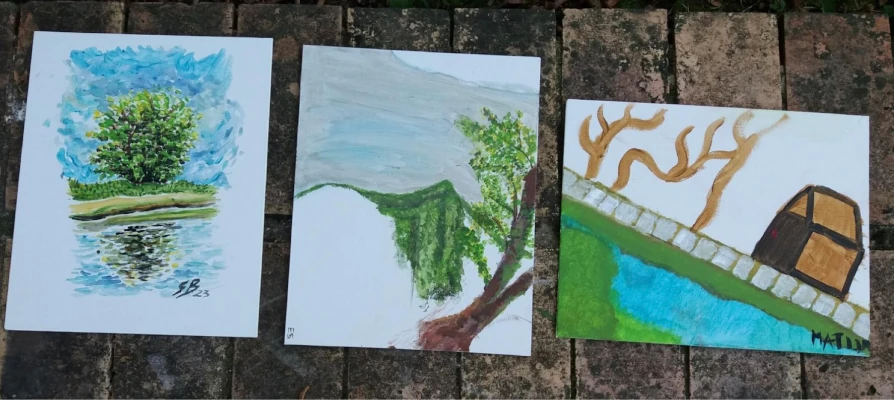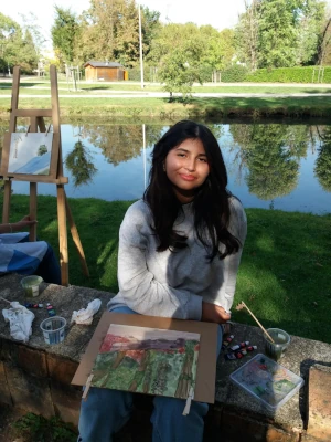 Nachmittags wurden wir von der netten Kunstlehrerin des Collège de Brou, Mélanie, in die Kunst des impressionistischen Malens eingeführt, und setzten das erworbene Wissen direkt mit Pinsel, Farbtuben, Paletten und Kittelschürzen im nahegelegenen Park beim Malen von Naturmotiven um. Schüler*innen und Lehrkräfte waren eifrig und konzentriert bei der Sache, wobei Fluss, Gras, Blätter, Bäume und Himmel auf unterschiedlichste Weise auf die Leinwand gebannt wurden. Vorübergehende Passanten sprachen uns an und bewunderten die Kunstwerke, die nach einer Trockenphase am nächsten Tag mit nach Hause genommen werden durften.
