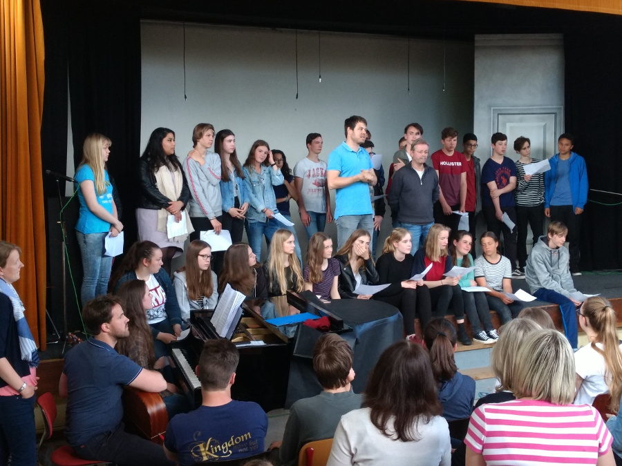 Am letzten Abend grillten wir alles zusammen im Foyer der Schule und sahen uns die Präsentationen an und genossen die Darbietungen des Musik Workshops.